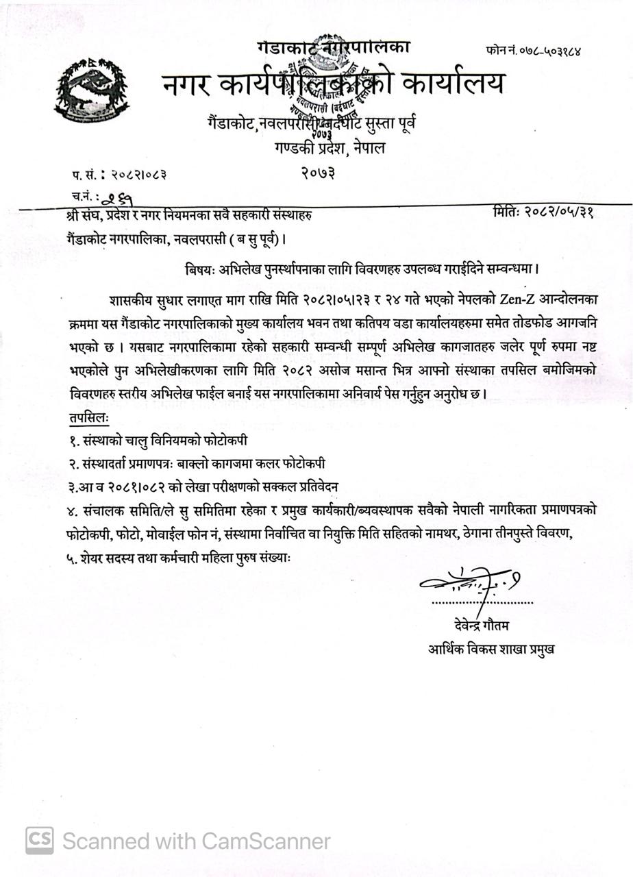 गैंडाकोट नगरपालिकाको नागरिक वडापत्र २०८२/०८३