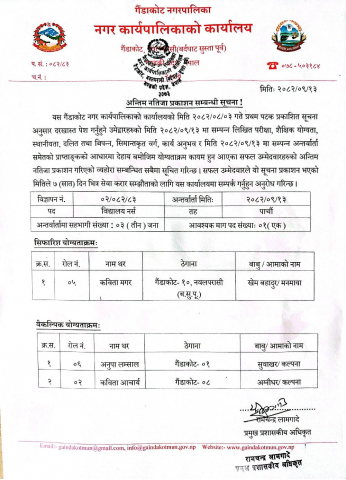 गैंडाकोट नगरपालिकाको नागरिक वडापत्र ०७९/०८०