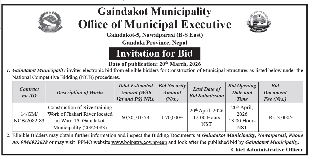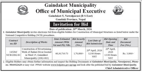 नदिजन्य पदार्थको बोलपत्र आव्हानको सूचना