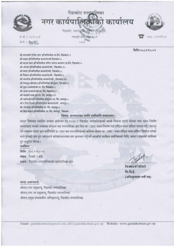 गैंडाकोट नगरपालिकाको नागरिक वडापत्र ०७९/०८०