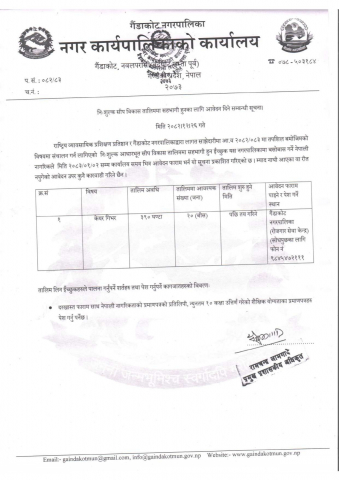 सिलाई मेसिन खरिदका लागि प्रस्ताव पेश गर्ने सम्बन्धि गैंडाकोट नगरपालिकाको सूचना