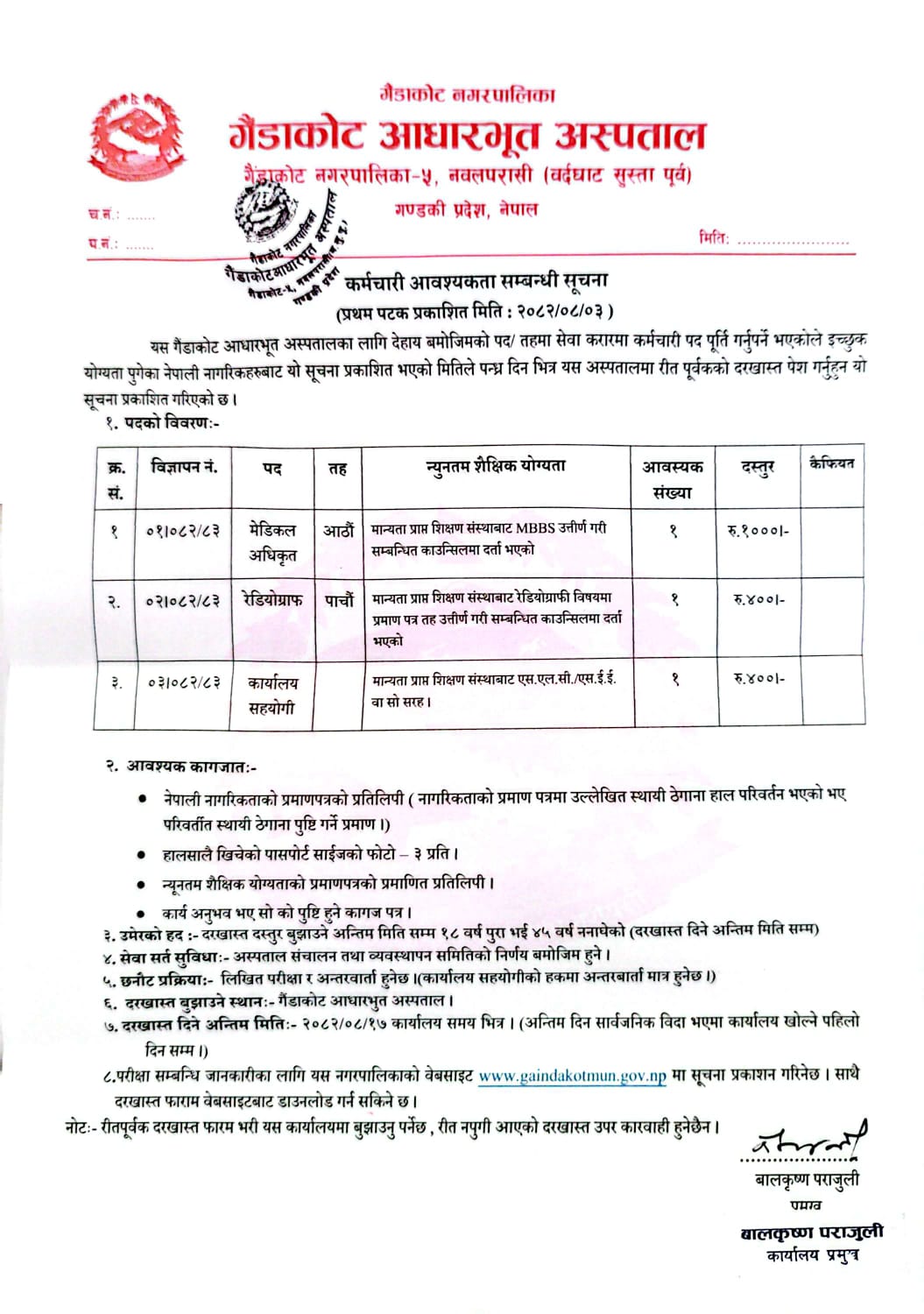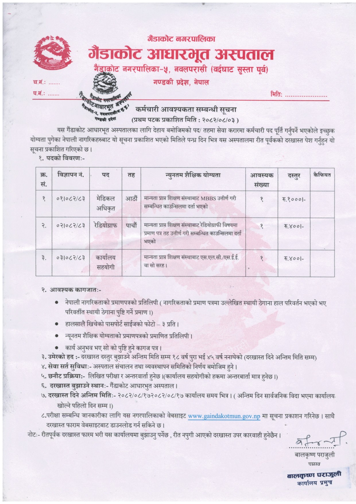 गैंडाकोट नगरपालिकाको नागरिक वडापत्र ०७९/०८०