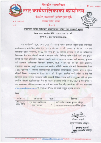 गैंडाकोट नगरपालिकाको नागरिक वडापत्र २०८२/०८३