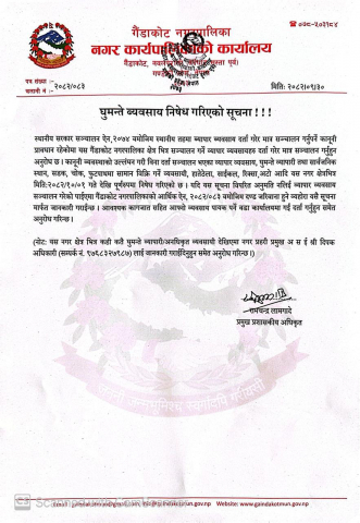» घुमन्ते व्यवसाय निषेध गरिएको सूचना