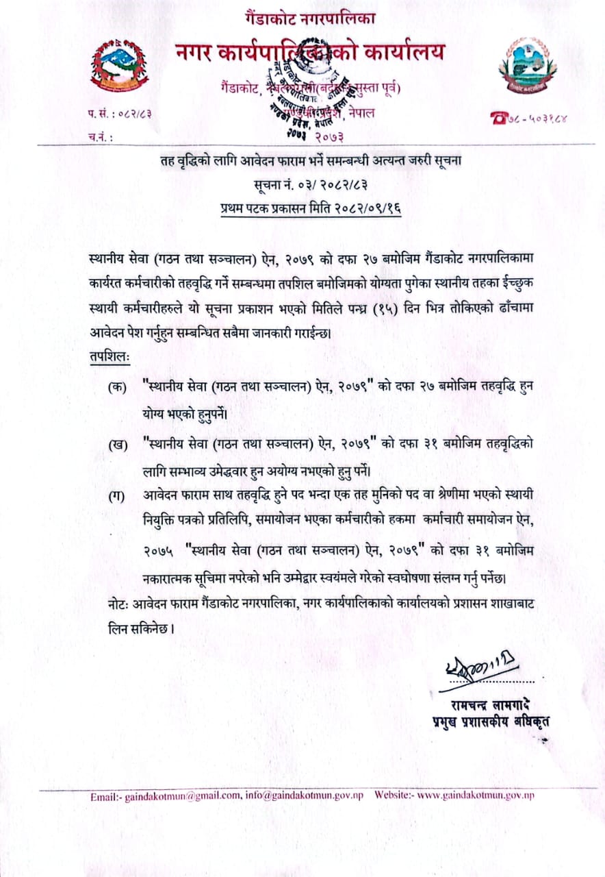 तह वृद्धिको लागि फारम भर्ने सम्बन्धी सूचना