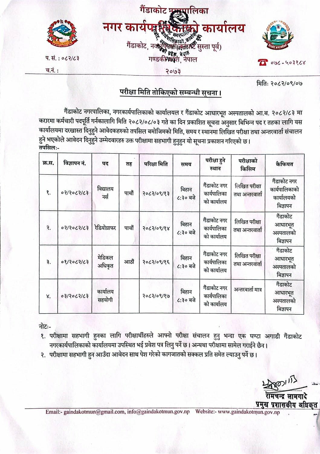गैंडाकोट नगरपालिकाको नागरिक वडापत्र ०७९/०८०