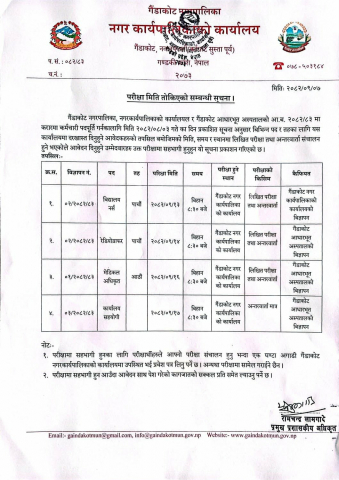 » परिक्षा मिति तोकिएको सम्बन्धी सूचना २०८२/०९/०७