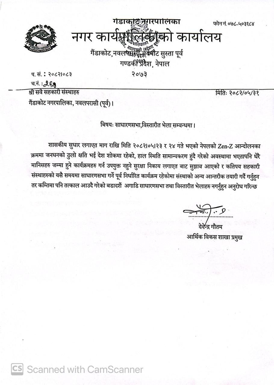गैंडाकोट नगरपालिकाको नागरिक वडापत्र २०८२/०८३
