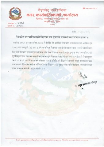 » गैंडाकोट नगरपालिकाको विज्ञापन कर बुझाउने सम्बन्धी सार्वजनिक सूचना