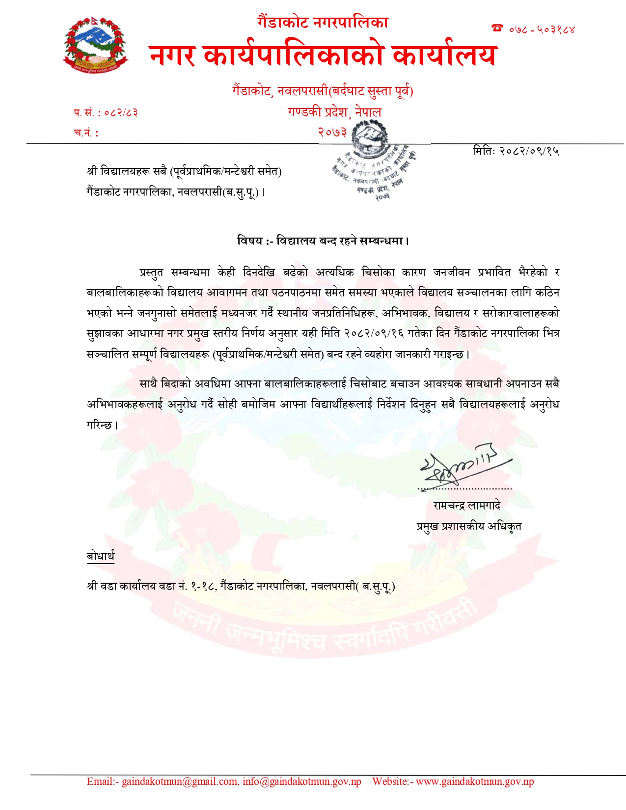 गैंडाकोट नगरपालिकाको नागरिक वडापत्र २०८२/०८३